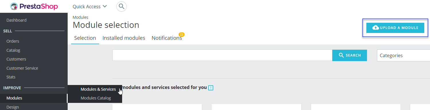 - Click the UPLOAD A MODULE button and select archive with the plug-in.