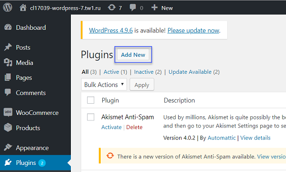 - Go to the Plug-ins section and click the Add New button.