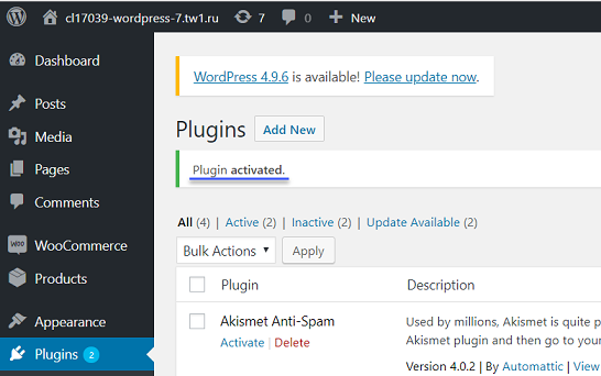- Make sure, that message Plugin activated has appeared.