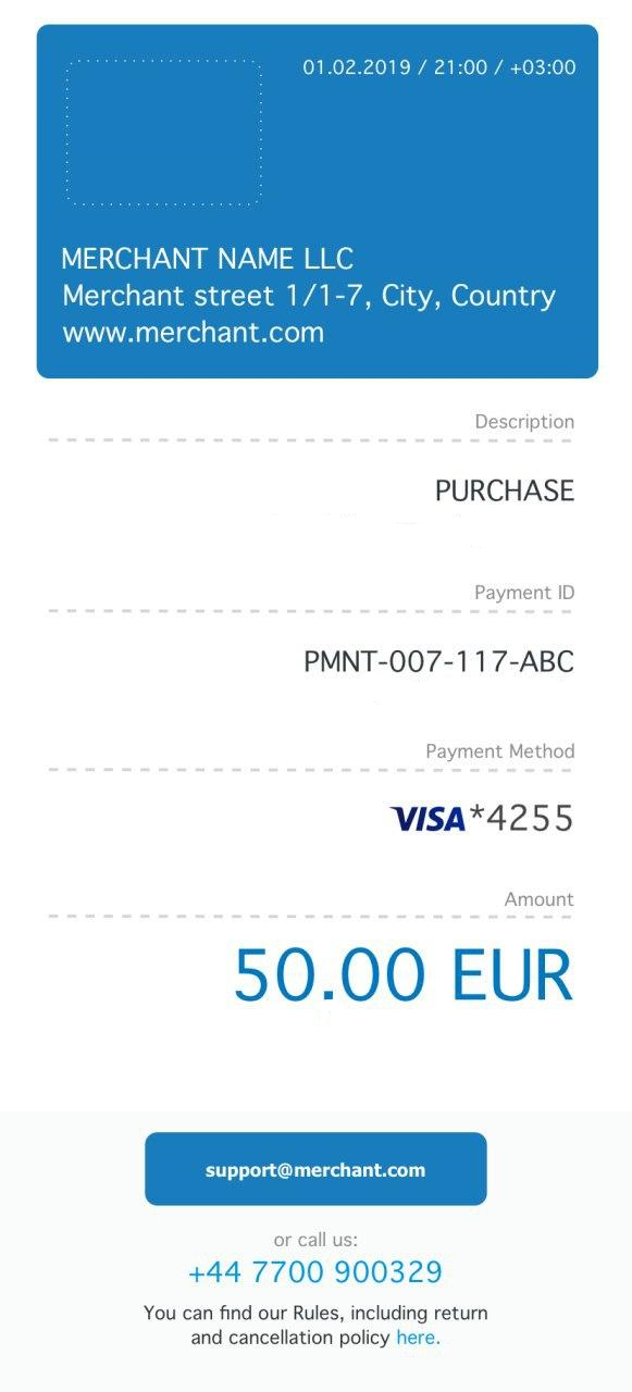 Sections below describe how this capability is set up, what versions of notification design can be used, and what relevant data to provide in payment requests. For more information about sent receipts to customers from Payment Page, see the section Sending receipts and notifications to customer.