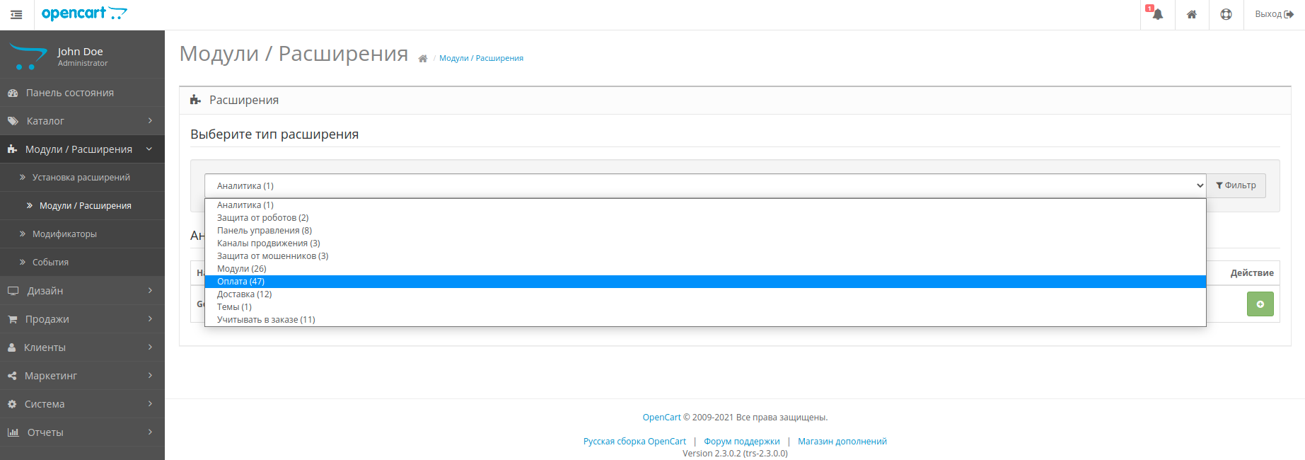 - Перейти на вкладку Оплата. и выбрать тип расширения —