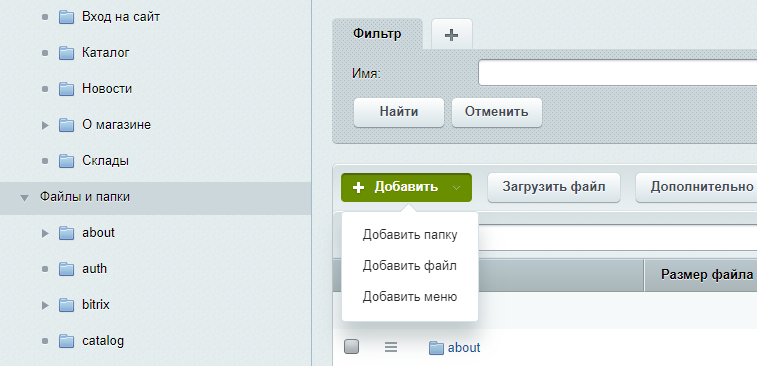 - Откройте CMS «1С-Битрикс».