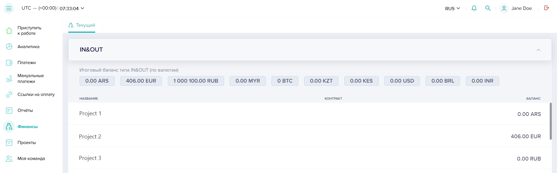. По умолчанию в интерфейсе доступна информация только о балансах IN/OUT и OUT, а отображение информации о балансах IN следует согласовать с курирующим менеджером PSPHost.