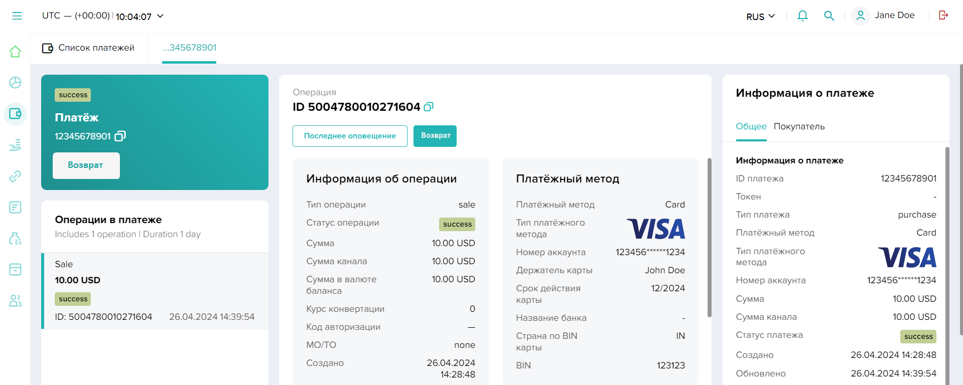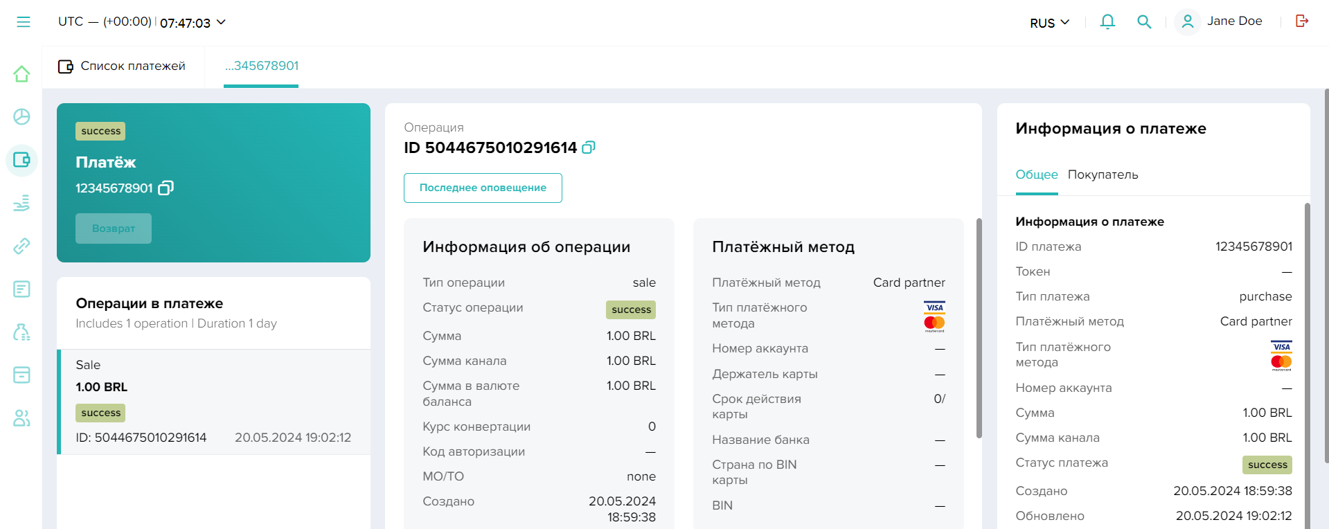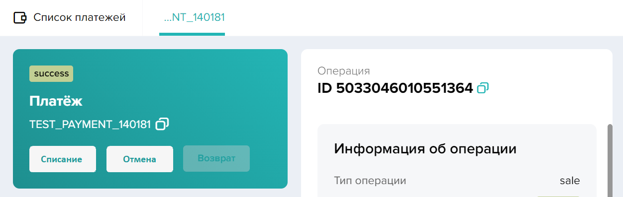 , а статус оплаты —success