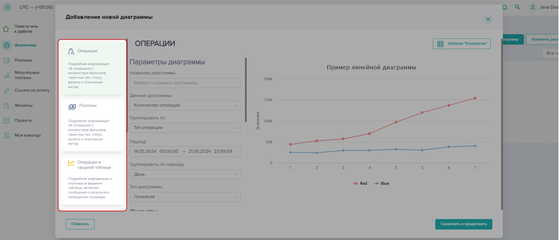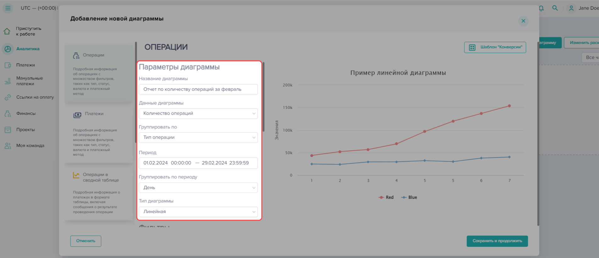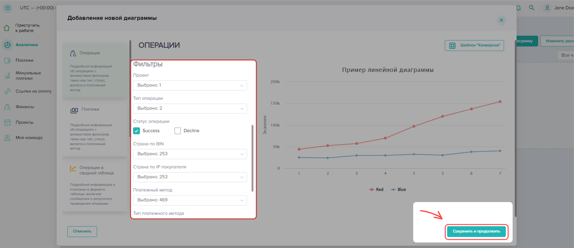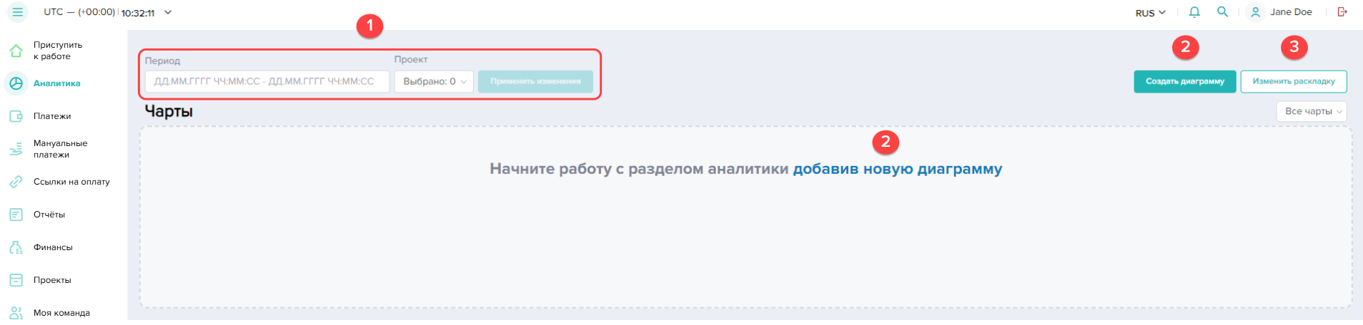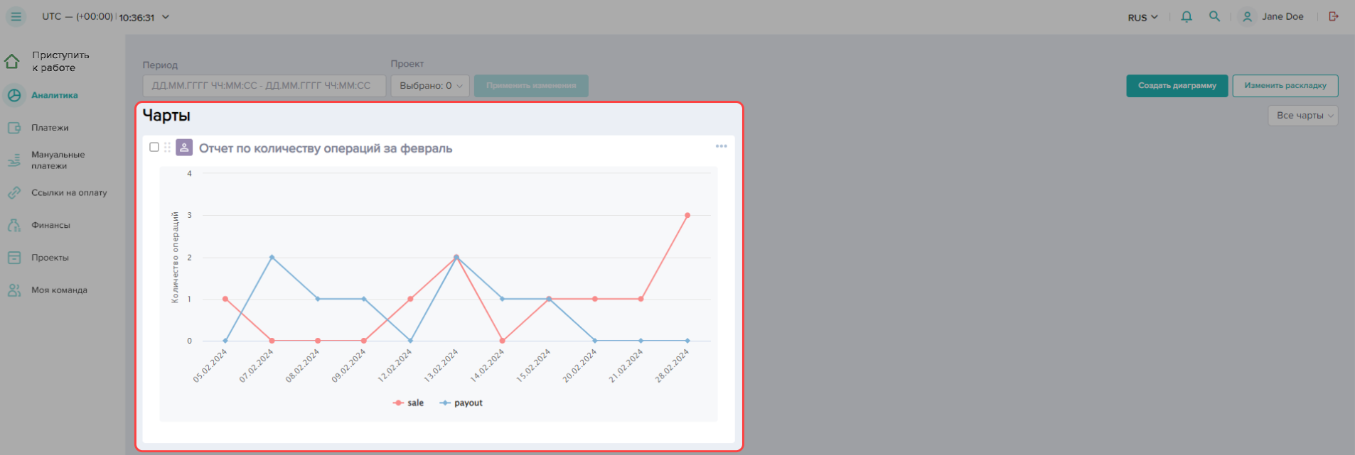 Чтобы создать отчет по проведенным платежам в Dashboard: