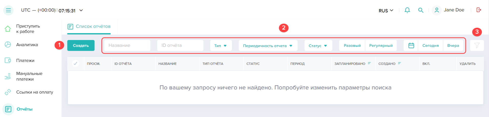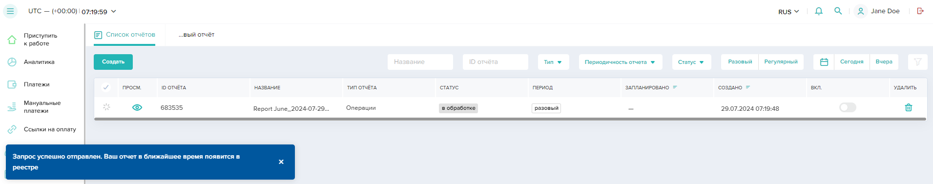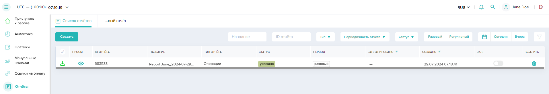- Перейти в нужный раздел: Платежи, Ссылки на оплату или Мануальные платежи.