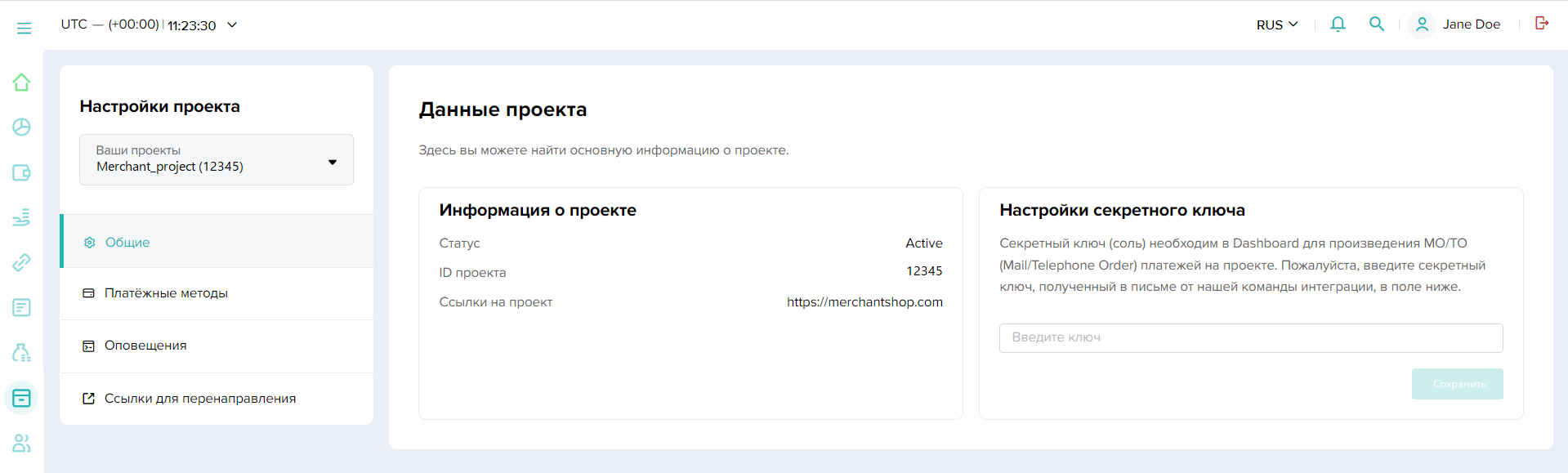При работе с интерфейсом Dashboard можно просматривать и настраивать отдельные свойства проектов. Для этого выделен раздел Проекты, доступ к которому регулируется отдельным правом и по умолчанию доступен учетным записям с ролью Merchant Admin