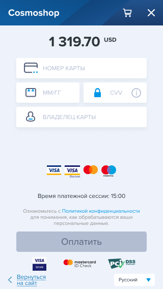 Если мерчант обладает сертификатом на соответствие требованиям PCI DSS, он может предоставить PSPHost копию сертификата и выстраивать работу любым образом, в том числе с хранением данных о картах на своей стороне и передачей этих данных в запросах в явном виде. Если же сертификата нет, необходимо заполнить лист самооценки (с вопросами о его заполнении можно обращаться к курирующему менеджеру PSPHost), после чего можно хранить данные на стороне платежной платформы и проводить оплаты с помощью платежной формы PSPHost, а выплаты — с использованием токенов карт (подробнее о токенах — в разделе Использование токенов).